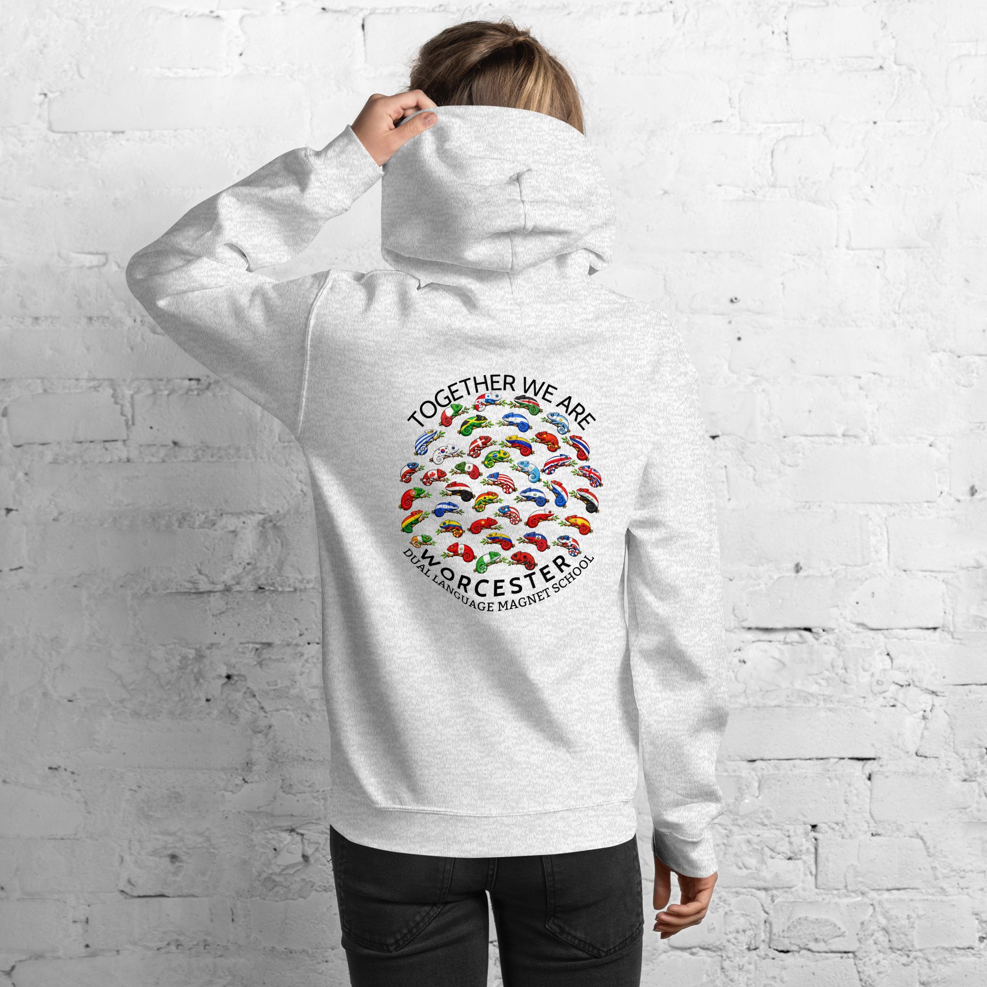 Celebrate the diversity of our school with this global sweatshirt! Everyone needs a cozy go-to hoodie to curl up in, so go for one that's soft, smooth, and stylish. It's the perfect choice for cooler evenings!