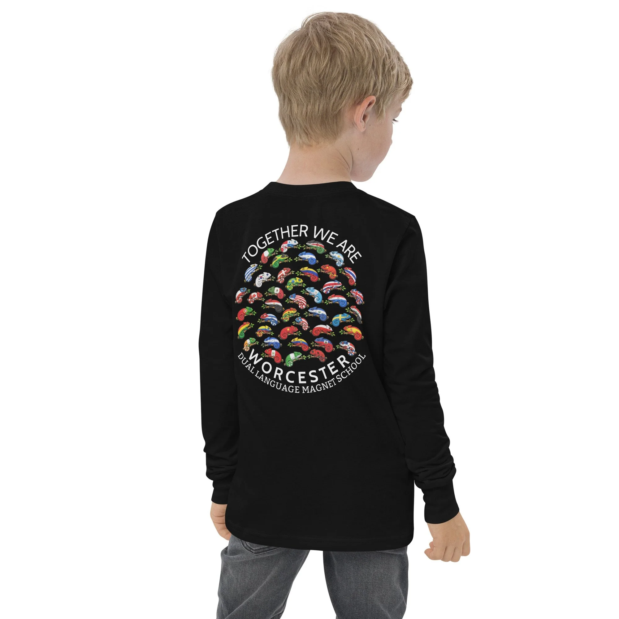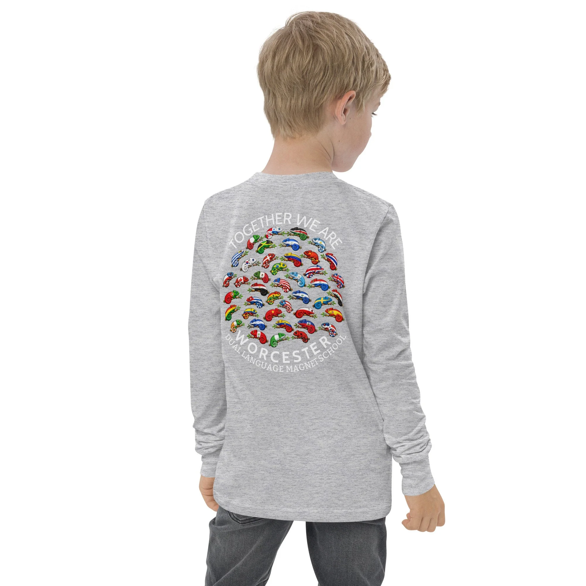 The Youth Long Sleeve Shirt is made of Airlume combed and ringspun cotton, which is known for its softness and durability. The shirt has a regular fit, classic crew neck, and ribbed cuff.